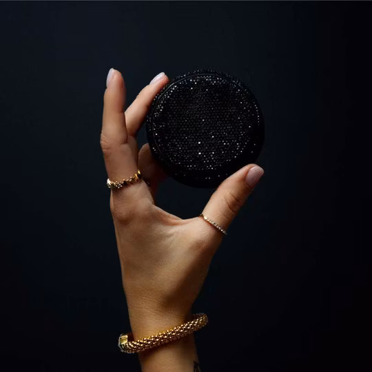 Nightclub Kelly är ett hantverk och varje glitter dosa är unik. Den svarta glitter dosan är noggrant och omsorgsfullt producerad och är som Sparkling Kelly också en refill dosa. De svarta stenarna är satta för hand för att klä in hela dosan i strass.